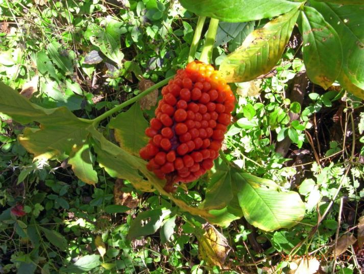 赤いトウモロコシみたいな、テンナンショウの実