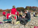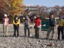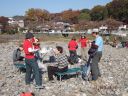 【期 日】 2013年11月17日(日) 【メンバー】 L=T.K、SL=S.A、T.M、S.O、A.Y、M.I 現地集合=R.S、K.F、M.F、N.K 【コースタイム】 武蔵横手駅7:38 → 277.5m地点8:43 → 多峯主山頂上10:13 → 飯能河原着11:13 → 交流集会開始13:20 → 終了・解散14:00 【コメント】 好天に恵まれた今年の交流会の場所は飯能河原。 各会は、午前中に多峯主山、天嵐山、龍崖山などの軽いハイキングを終えて河原に集合しました。 参加人数は9団体84名ほど、新座山の会は10名。 一方、河原では午前中から各会の食担が得意の鍋の準備を始めていました。 鍋は石狩鍋、豚汁、。はっと汁、キノコ汁、すいとん、ピエンロー鍋に、お汁粉、 そして、新座定番の「鴨鍋と紫芋の羊羹」(羊羹は外人気)と多種多様でした。 今年は鍋の傍に幟を立て、他の会の人を呼び、食べ比べ交流を深めました。 鍋とアルコールで満足したところで各会の自己紹介(人数、男女比平均年齢、会の特色など) そして最後に山の歌の合唱で盛り上がり、お開きとなりました。 T.K記 |