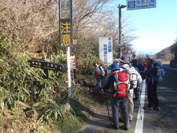 一旦車道を横切って明神山へ