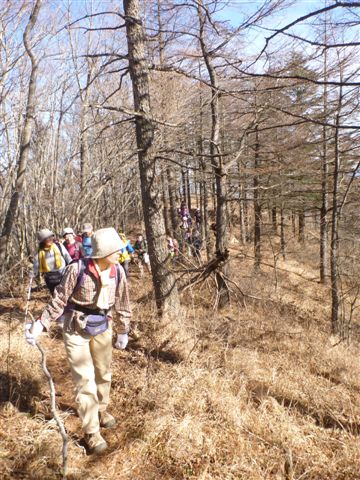 明るい唐松尾根を
