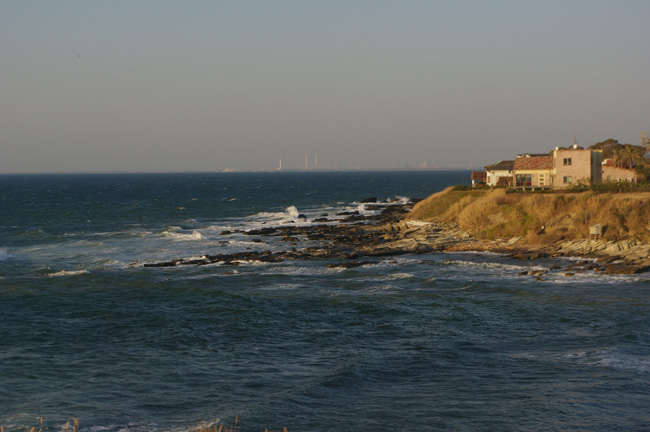 潮騒の打ち寄せる断崖に建つ風景