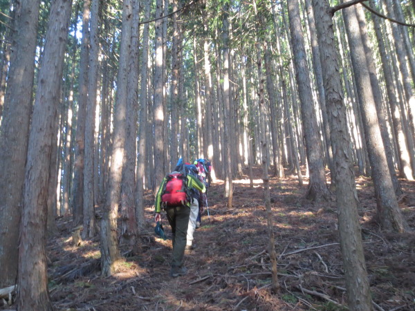杉の木立の間を登ります