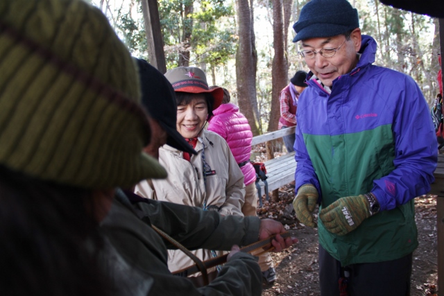 シュリンゲで簡易ハーネスを作る練習中、、、余裕の笑顔?