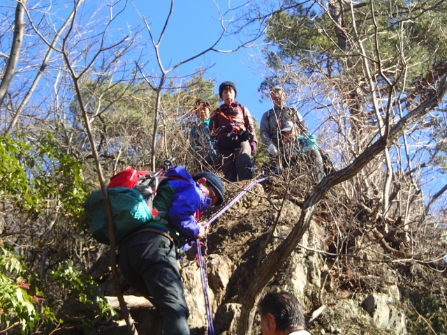 カラビナの掛け替えを講習中 上からも真剣に聞いています