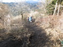 | コメント 以前インドヒマラヤに一緒に登った3人に声をかけてもらい、矢倉岳に初めて登りました。とても良いお天気で、風もなく、ポカポカ陽気の中のんびりと頂上を目指しました。 途中ミカン畑があり、ミカンが一袋百円で売っていたのでそれを買って、休憩の時に食べながら登りました。 標識もしっかりとしていて、しばらくはアスファルトの道を登り、その後は登山道となりました。ずっと登りが続きましたが、まわりの景色を楽しみながら登りました。 しばらく登ると、なだらかな登りが続き、そのうちに頂上に着きました。頂上に着いたとたん、大きな富士山に迎えられました。 登ってくるときはほとんど誰にも会わなかったのに、頂上には、たくさんの人たちがいて、にぎわっていました。小学生ぐらいの子どもたちも数人いました。 昼食を食べてから、地蔵堂方面に下山しましたが、最初は急な下りでした。ぬかるんでいたので、尻もちをつかないように気をつけながら下りました。富士山を眺めながら下りました。 その後は、なだらかな散歩道が続きました。時間の都合で万葉公園には行かないで、地蔵堂に下りました。 少し休憩してバスに乗り、新松田駅まで行きました。大きな富士山が見られて、 素敵な新年山行となりました。 (Y.S記) |