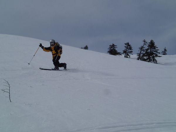 Sさん、テレマークスキーです。