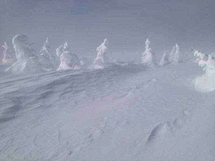 風紋が美しいシュカブラに並ぶ樹氷が見えてきました!