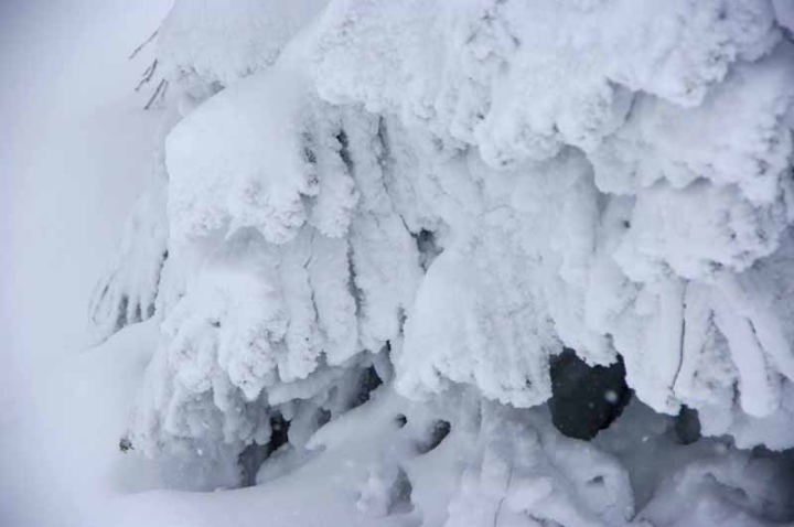 凍てつく椴松の枝の下は空洞になっている。