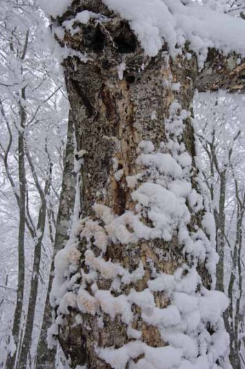 大きなぶなの幹にキツツキが巣造りをしていました、