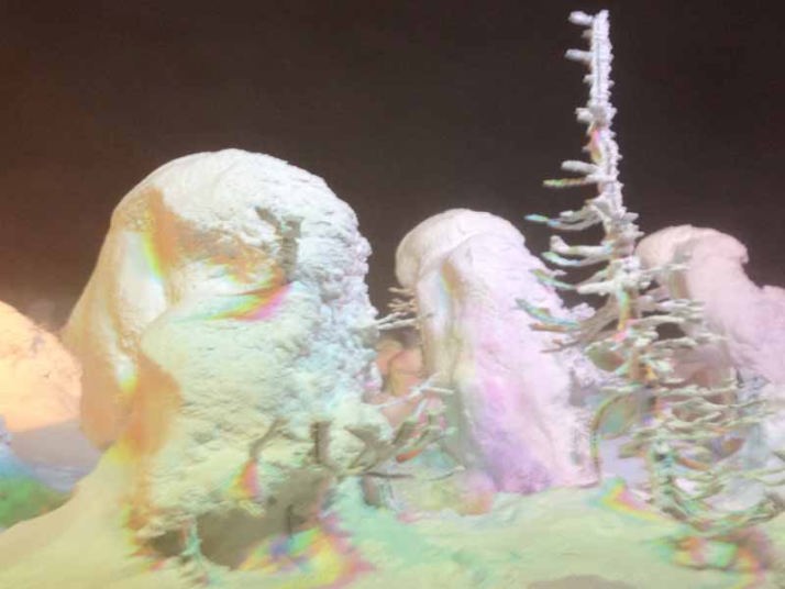 蔵王地蔵岳山頂駅前のライトアップされた樹氷