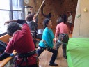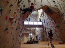 | 【コメント】 Aリーダーの呼びかけで室内クライミング練習が始まって3回目。初参加の人は最初にジムのインストラクターから基本 ワークを教わってからメンバーと合流します。 さらにリーダーからも操作方法や注意事項を聴いてから開始です。お互いにロープの結び方を確認し合い、登る人、確保 する人と分担して、さあ、トライ。 先ずは簡単なホールドを探しながらトップロープで上へ、上へ。垂直に近い壁を登るのは緊 張するけれど、しっかり確保されているという安心感は少々困難なホールドも思い切ってチャレンジできます。首尾よく上部にタ ッチできたら、ヤッター!という心地。 確保役は特に人の命を預るため、みな真剣な表情でクライマーの動きを見ながらロープを手繰ってゆきます。最初はぎこ ちなかった一連の動作が、やがて少しばかりさまになってきます。 今回私は初めてリードクライミングを試しましたが、教わった知識と体がバラバラで、いつの間にかロープが絡まって“知恵 の輪”状態に。こうしてはいけないよ、という誤った手順の見本となりました。うーん、難しい・・・。 和やかに、そして真剣に練習していると、あっという間に予定の3時間が経過して、ジムを出ると冬空はすでに暗くなって いました。 (記:Y.S) |