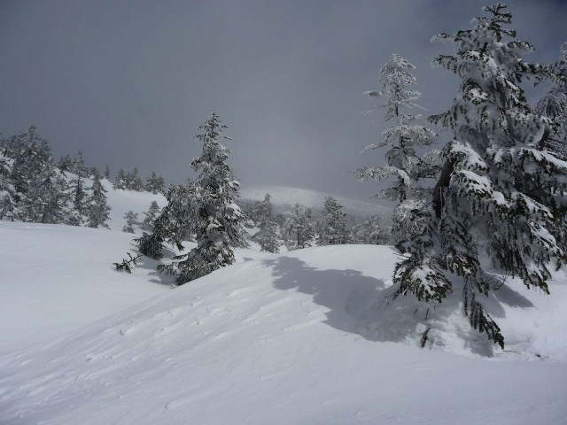 風の当たる斜面はクラストしています