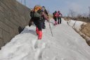 | 【コメント】 当初秩父方面を予定していたが大雪で道路が不通のためこちらに変更した。 二週続いた大雪の後なので、さぞ沢山残っているだろうと雪遊びのつもりで出かける。 しかしもう10日以上も経っているし、今日の予報は4月頃の陽気になるとか・・・ 案の定、登山道は 所々雪は残るものの、期待したような景色ではなかった。むしろ道端には小さな春の花がぽつぽつと 咲き、雪解け水が強い陽にキラキラと輝いていた。 もうすこし雲が少なければ富士山も良く見えたのに、もうすこし空気が澄んでいれば水平線も見えた のに、ちょっと残念。 歩いているとTシャツ1枚でも暑かった。頂上付近の吹きだまりにたまった腐れ 雪と遊びながら歩く。ルンルン気分で慎重さに欠けたせいか、予定にない神明社という古い神社に 出てしまった。どうもイチゴを食べたあたりで間違えたらしい、後で地形図を見たらそのような道があ った。ちょっと遠回りしてしまった。 (記T,M) |