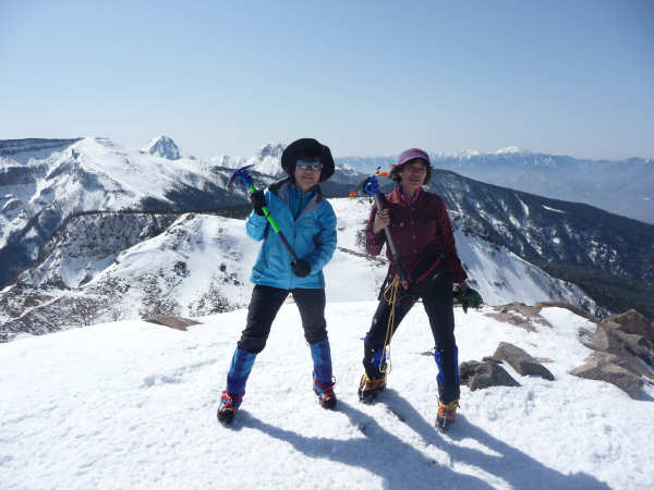 山頂、やったね 後ろには赤岳と阿弥陀岳
