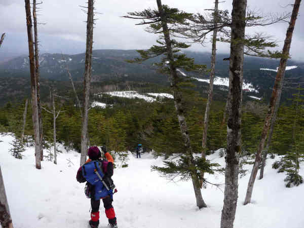 下のほうに麦草峠の広場が見えてきました