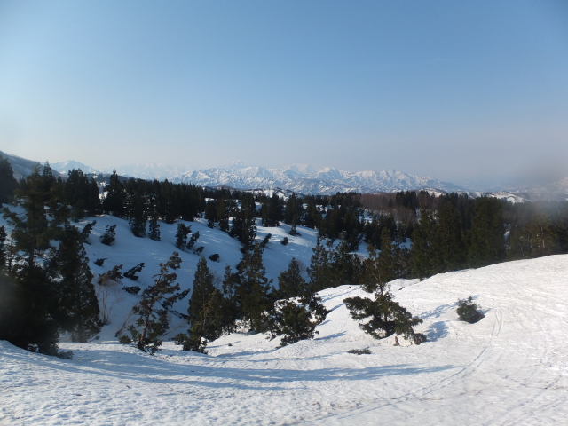 振りかえり見ると、越後の山々がとても綺麗。