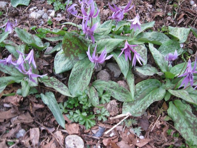 登山口近し。カタクリが咲いていました