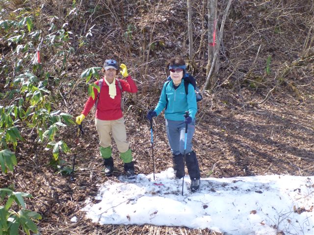 小木・笹薮細尾根斜面だが登山口にはテープたっぷり