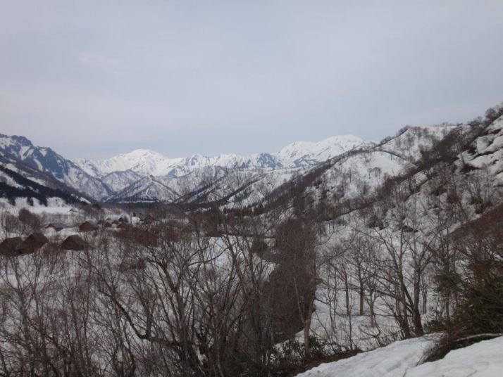 左手に銀山平の建物を見ながら進む