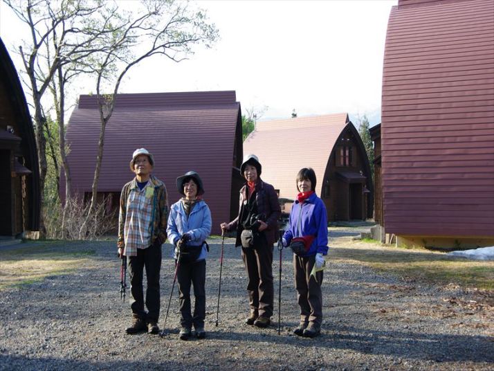 なべくら森の家のロッジの前でこれから出発