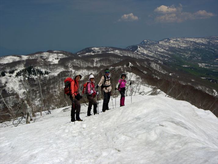 信越トレールを背景に、足下の雪はまだまだ多い。