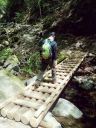 自分の目で確かめダメなら戻ればいいだろう。ということで決行。結果、残雪の上にかろうじて橋の残骸がかかっているという