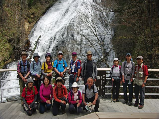 湯滝の前で