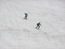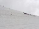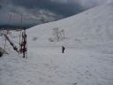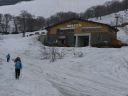 | <2日目> 意外に夜間もトラックのエンジン音が響き、ちょっと寝不足の朝を迎える。 みんな、ETC割引のために高速に入るタイミングを計っているのか? 雨は止んでいてちょっと期待が持てる天気の様子。 朝食をとり、テントを撤収して月山スキー場に向かう。途中の景色がすごくきれいだ。 芽吹いたばかりのブナの新緑と雪のコラボ。雪も相当深い。 みずみずしい風景を堪能しながらスキー場駐車場へ。 スキーを担いで歩いていくと途中でトラクターが待っている。・・・だが載せてくれるのはスキー板のみ。 人間も乗れるのかと思ったら「頑張って歩いてくださ~い」と言われた。 リフト乗り場からペアリフトに乗る。 山全体がゲレンデという言葉通り、広いバーンがよく見える。 4月からオープンというだけあって積雪は7m以上だそうだ。 だが視界が悪く、月山まで行くのは厳しいためペアリフトを下りてからシール歩行で姥ヶ岳を目指す。 ところが、途中8合目くらいまで登っていったらどんどん風が強くなり、急坂のシール歩行と強風で悪戦苦闘する。我らの他に登ってくる人はいない。 雷鳴も聞こえる。あまりの強風に耐風姿勢をとりつつ、それ以上登るのを断念するが、シールをはずすのも困難なほどだ。 風で大量のざらめ雪が頭や顔や耳やらむき出しの皮膚に突き刺さってくるようにぶつかってくる。滑るどころではない。痛いのと飛ばされそうになるため、雪面にしゃがみこみ風の合間を縫って平らな場所に移動する。 やっとの思いでシールを外してゲレンデ下部に向って滑る。 そして比較的風が弱い沢コースを滑って降りたとたん強風でリフトが止まってしまった。 仕方なくレストランで休憩、昼食。 雷が近づいているため避難するようにアナウンスがあり、スキー場は全員退避する。 1時間くらい待った頃にやっとリフトが動くということで、乗ってみたものの相変わらずの強風で1分ごとに止まったり、動いたりの繰り返し。風でリフトが揺られて相当怖かった。 倍以上の時間がかかってやっと1本滑ったら、またリフトが止まり、再開するか決めるのは1時間後だと言われた。お天気ばかりはどうにもならない。悪天も経験なりきか。・・・ 仕方なく本日は撤退することにして駐車場まで滑って戻る。 時間が早いため、寒河江によって美味しい蕎麦屋で蕎麦を食べる。 また、帰える道すがら斎藤茂吉のふるさとであるという上山(かみのやま)温泉で温泉を浴びる。 それから一路東北自動車道を飛ばして帰路に着いた。 高速道路代を節約するために佐野SAでインフォメーションに尋ねたら0時過ぎに浦和料金所を出れば次の日が土曜日のため半額になるという、耳寄りな情報。だが0時まであと1時間半もある。時間を潰し、次の羽生PAへ。最近話題の鬼平犯科帳のPAだ。夜間は店は閉まっていたがなかなか楽しそうである。そして最後に蓮田SAで時間調整。みんな考えることが同じなのか、夜中なのにトラックも乗用車もぎっしりでびっくりした。 0時5分くらい前に出発して無事に高速料金を節約して帰路に着いた。 いろいろ経験できた山スキー道中になった。また是非リベンジしたいものだ。 コメントM/S |