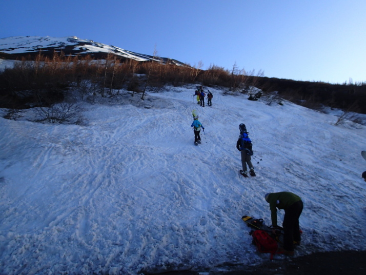 今年は雪が多く、新五合目から雪渓が続いていました