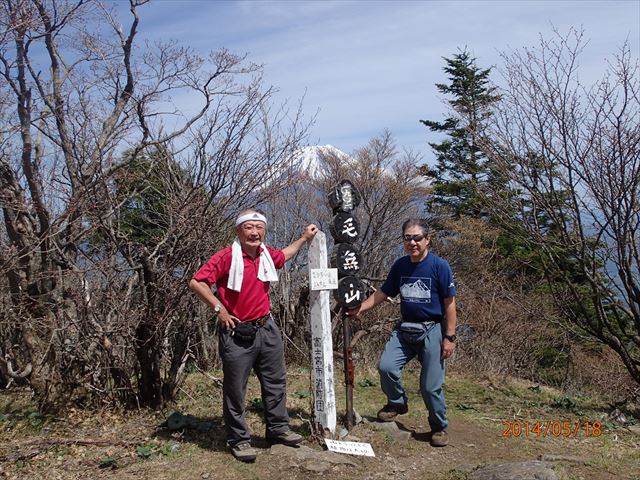毛無山頂上にて、オジサン二人 ガンバッタね