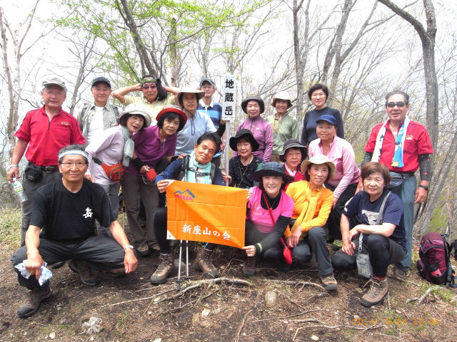 苦しい登りも終わり、にっこりと 地蔵岳山頂で