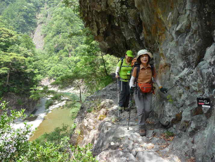最後までチェーンをつかんで歩きます