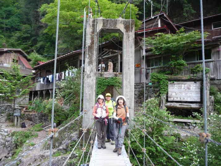 山の家の目の前の吊り橋から出発