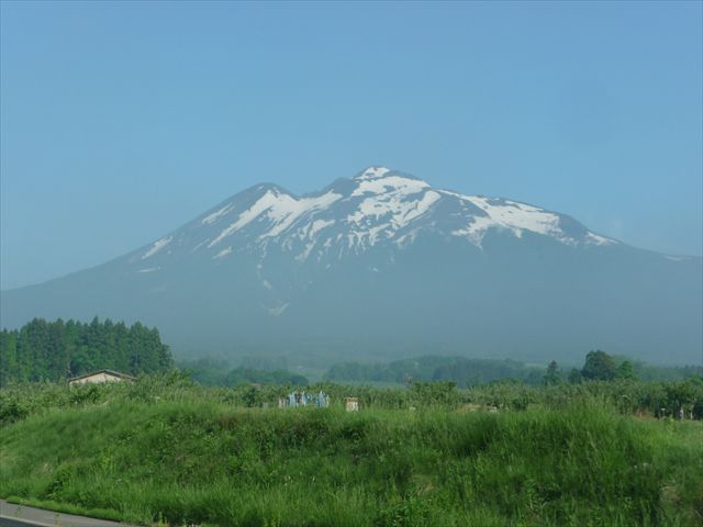 これから登る岩木山、かっこいいですね。