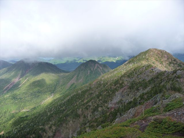 これから越えていく帝釈山・小真名子山・大真名子山。