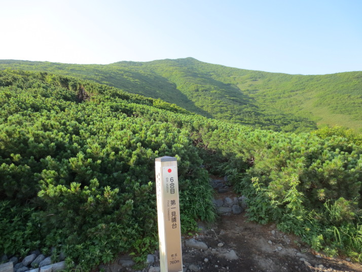 6合目 第1見晴台(760m)まで来ました。山を眺めながら登ります