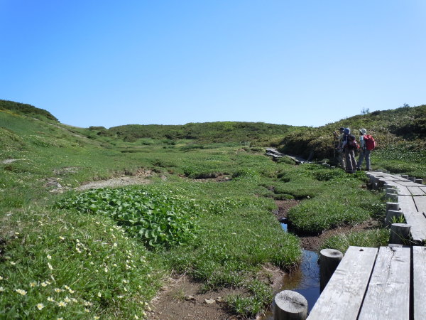 展望が開け、湿原となり木道歩き