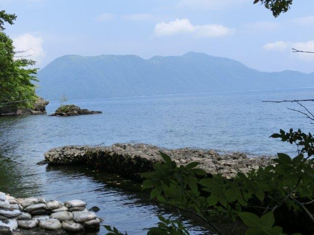 丸駒温泉の天然露天風呂は支笏湖と同じ水位