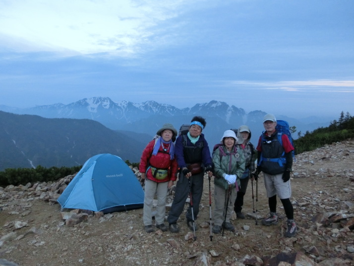 二日目、4時半に冷池山荘を出発しました。まだ眠そうです