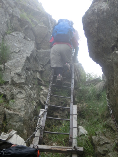 鉄のはしごを登っています