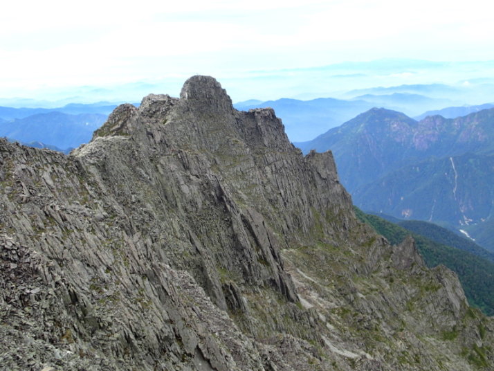 ジャンダルム、馬ノ背からロバの耳、右の岩稜が飛騨尾根です