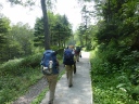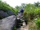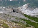 | 《7月29日(火)》 羽田発6:35なので志木・朝霞から4:40分台の空港バスで羽田に出発。 8:30旭川空港着ー快晴。空気がほんの少し東京と違うみたいだ。予約してあったジャンボタクシーで層雲峡に 10:15に到着。コンビニで今夜の夕食弁当と、明日からの食糧・水等を購入する。 リフトの降り口から黒岳石室小屋まで2時間ぐらいなので、全員500㎜ℓの缶ビールを購入しザックに。 そして明日からの共同水として水2リットルも別途購入し(節約のため?)運ぶ事に。 RW駅で昼食をとりRW~リフトを乗り継いで12:30に7合目駅に到着。熊の縄張の登山道を、ダイセツトリカブト・ キンバイソウを眺めながら鈴を鳴らし、ダケカンバの林、急坂、そしてなだらかな稜線を皆さん気分良く歩き15:00 に小屋に到着。全員絶好調です。小屋前のテーブルで宴会開始。ビール、焼酎 美味しかった。 暑くもなく寒くもなく北の山はいいですね。小屋の入りは8分ぐらいかな。 コメント:M・I 写真:S・T |