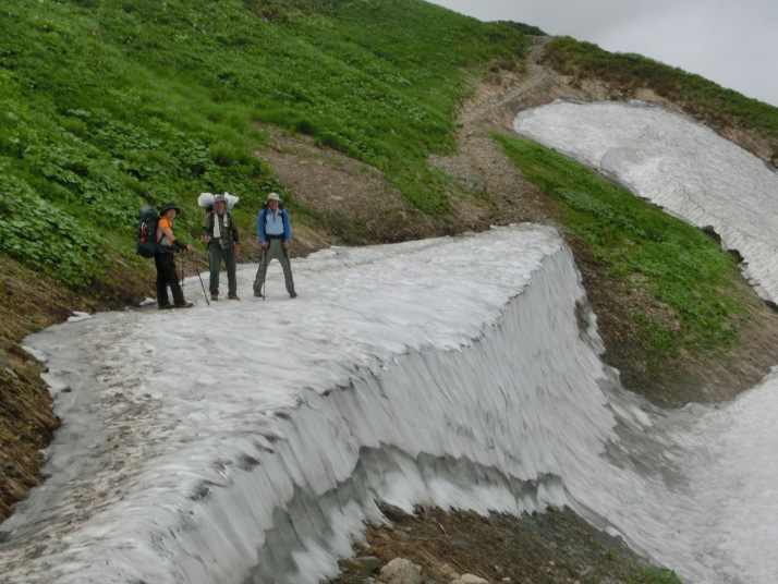大きな雪渓を渡りました