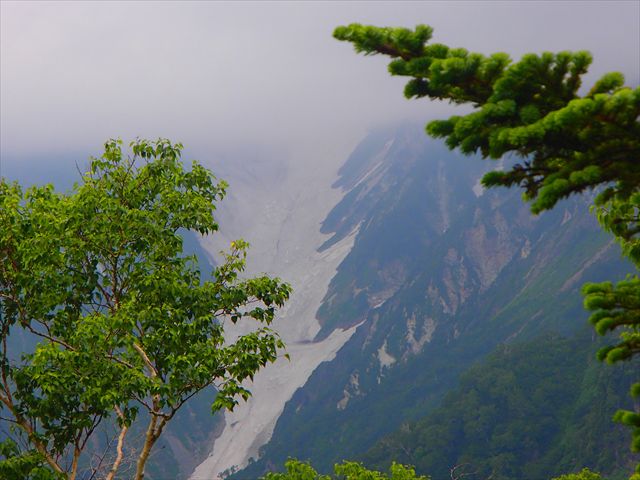 白馬岳の大雪渓中央一列ありの行列は登山者です