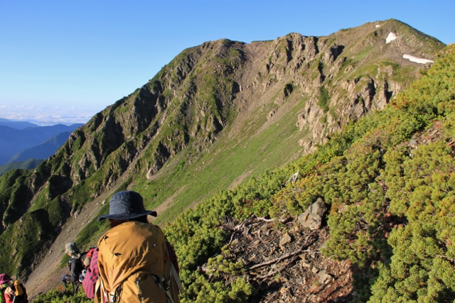 赤石岳を見ながら赤石小屋への分岐を下っていきます