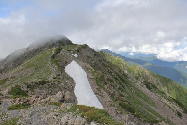 赤石岳の目印、3個の雪渓が間近に