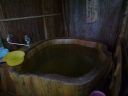 11年 08月)や山頂渉猟(白山書房)記載のような姿を時分の目で見てみたかったのだが。 持参の焼酎で水割りを作って、YKさんと談笑していると相客の若い男性が入ってきた。「昨年、悪天候で槍ヶ岳に登れなかったので再挑戦」とのことだ。管理人さんが入浴を勧めに見えたので、YKさんから順番に汗を流した。薪で沸かしたという風呂は巨大な切り株を浴槽にした凝ったものであった。夕食も管理人夫人手作りの品数も味も量も満足できる田舎風和食であった。「明朝は早出をして蒲田富士から涸沢にくだる」と水上さんにYKリーダーが話す。水上さんからは「薮山で痩せ尾根があるので注意」とのコメントがあった。 |