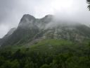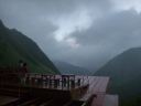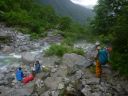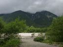| 8月06日(木) 夜中には月が朧に見えたり、強い雨が二、三度降ったり天気がコロコロ代わって判断が決まらない。朝になっても前穂北尾根は雨雲に覆われ、5・6コルコースに好天好展望を望めそうにない。YKリーダーの決断で計画変更して一般コースを下ることにした。 小屋朝食を摂り、一般登山者と一緒にゆっくりと小屋を出た。本谷橋手前で路肩から転落した男性を引き上げるというハプニングもあったが霧雨に煙る屏風岩、横尾尾根を見つつ横尾谷を出て梓川沿いに下って行った。横尾を過ぎるあたりからゴミ回収袋を下げた人達とすれ違うようになった。その数は徳沢、明神と上高地に近づくほど増えた。地元の人たちではないようだ。こんなツアーもあるのだと胸が熱くなった。 上高地に近づくと予想どおりサンダル、ウォーキングシューズの旅行者が混じる。小梨平キャンプ場の入り口で「12:00〜19:00営業」の風呂看板がかかっているのをYKリーダーが見つけた。今日はシャワーと計画していたので浴槽にゆったり入れるなら存外の好都合、うれしいと受付で可否を尋ねた。30分ほど早かったが「もう湧いているのでOK」とのことで\600を払って2日分の汗と疲れを流すことができた。爽やかな気分でバスターミナルに向かう。こんな曇天でも河童橋の上は行列、渋滞や砂煙がないだけ気分が良い。バスターミナルではタクシーを待つ客の行列はなし、新島々行バスの乗客も30人程度と台風の影響は上高地でも大きいようだった。松本からはわざと普通列車に乗って中央線の旅を楽しみ、ほぼ予定の時刻に帰宅することができた。 |