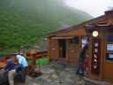 | 先着のYKリーダーが宿泊手続きを済ませ、管理人の水上さんと談笑していた。今日は風呂が沸くといううれしい話だ。案内していただいてまず荷物を部屋に置いて、アサヒスーパードライ350ml缶(\400)を胃に流し込む。サンダルに履き替えて庭に出てみた。明るいが低い雲が空を覆い、小屋の軒先から見えるはずの蒲田富士の尖がりは穂高平に出かけても望めないと判断した。新ハイキング(670