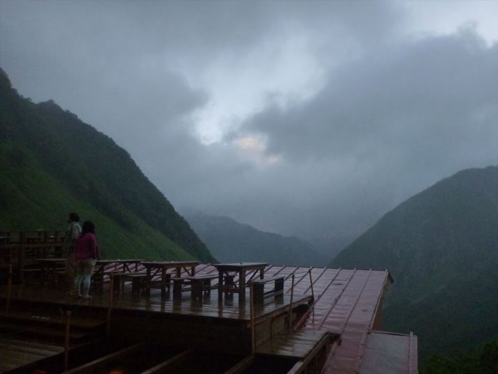 23涸沢下流も流れる雲で覆われ